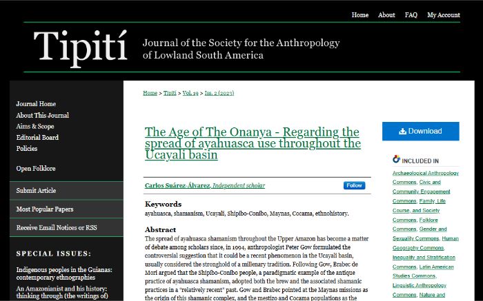 This article, published in the anthropology journal Tipití, dives into an academic controversy: Was ayahuasca recently adopted by some peoples, such as the Shipibo, who are usually credited with millennia-old use? Anthropologist Peter Gow and ethnomusicologist Bernd Brabec de Mori put forward this idea in influential articles. I present a strong argument in the opposite direction.