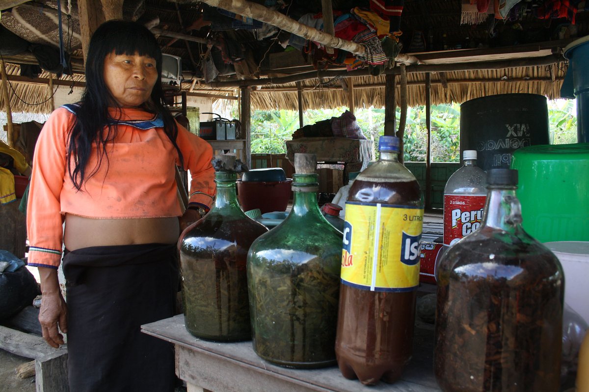 Karla, la hija de Roger, cursa tercero de secundaria. Acude al salón con varios libros bajo el brazo. Las tapas han sido adornadas con fotos de famosos actores gringos y modelos rubias. En el interior de la contraportada, el escudo y el himno de Perú y la Declaración Universal de los Derechos Humanos. Karla quiere estudiar arquitectura para diseñar las casas del centro de medicina natural de su padre, aunque hasta el momento no ha sentido ningún interés por tomar ayahuasca. Los domingos acude a una iglesia evangélica en la que las prácticas de su papá no están bien consideradas. Tampoco Karla viste la indumentaria tradicional de las mujeres shipibas, ni ha mostrado inclinación por heredar los conocimientos de herbolario de su abuela Ida Ramos, que lo sabe y se lamenta: “Ahora ha cambiado. Mujer… Nada que ver. No sabe. Con pantalón, con gorra… ¡Ya no hay shipibo!”. “¿Ya no hay shipibo?”, inquiero sorprendido. “¡Se terminó!”.