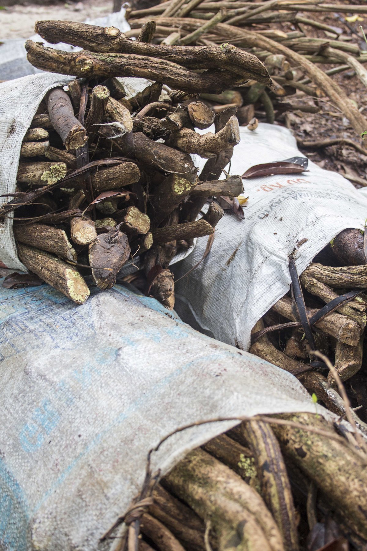 Tras comprarlo buscamos leña; el proveedor habitual es un joven que apila ordenadamente miles de palos a la puerta de su casa, en un barrio popular, a unos centímetros del ruidoso tráfico. La madera es guacapurana, ideal para cocinar. El joven ha viajado varias horas por el río Nanay y se ha metido bien adentro en el bosque, ha tumbado un enorme palo y se lo ha traído. Paradójicamente, el río Nanay es endémico en malaria, y la corteza de la guacapurana, que se está acabando, un remedio para las fiebres. El auge de la ayahuasca está añadiendo una presión extra a la maltratada naturaleza amazónica.