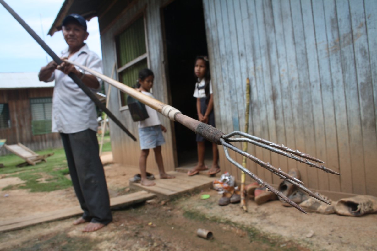 En los años cincuenta Bernardo era un muchacho del pequeño pueblo shipibo de San Francisco de Yarinacocha, cercano a Pucallpa (que ya quería ser ciudad). Aprendía a ser hombre en el seno de una naturaleza de abundancia. Bernardo recuerda la pesca de entonces con nostalgia; conversamos en la cocina (un techo de hojas de palma, un fuego en el suelo de tierra pisada, algunos muebles toscos), junto a la mesa cubierta por un hule de plástico: “A veces íbamos a agarrar con tarrafa [red], a veces con flecha. Había tucunaré [especie de pescado muy preciada] grande… Ahora ya no hay. El Perú se ha aumentado. Demasiados peruanos, ya no hay pescado. Ahora el tucunaré cuesta quince soles el kilo. Bien carísimo. Los pobres ya no pueden comer pescado; el pescado es de ricos”.