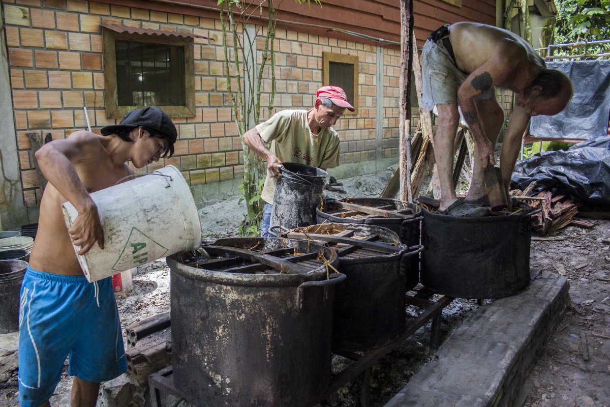 Ron cocina prácticamente todas las semanas del año, no sólo para sus ceremonias, ya que vende el remedio a muchos de los albergues ayahuasqueros que funcionan en la zona.