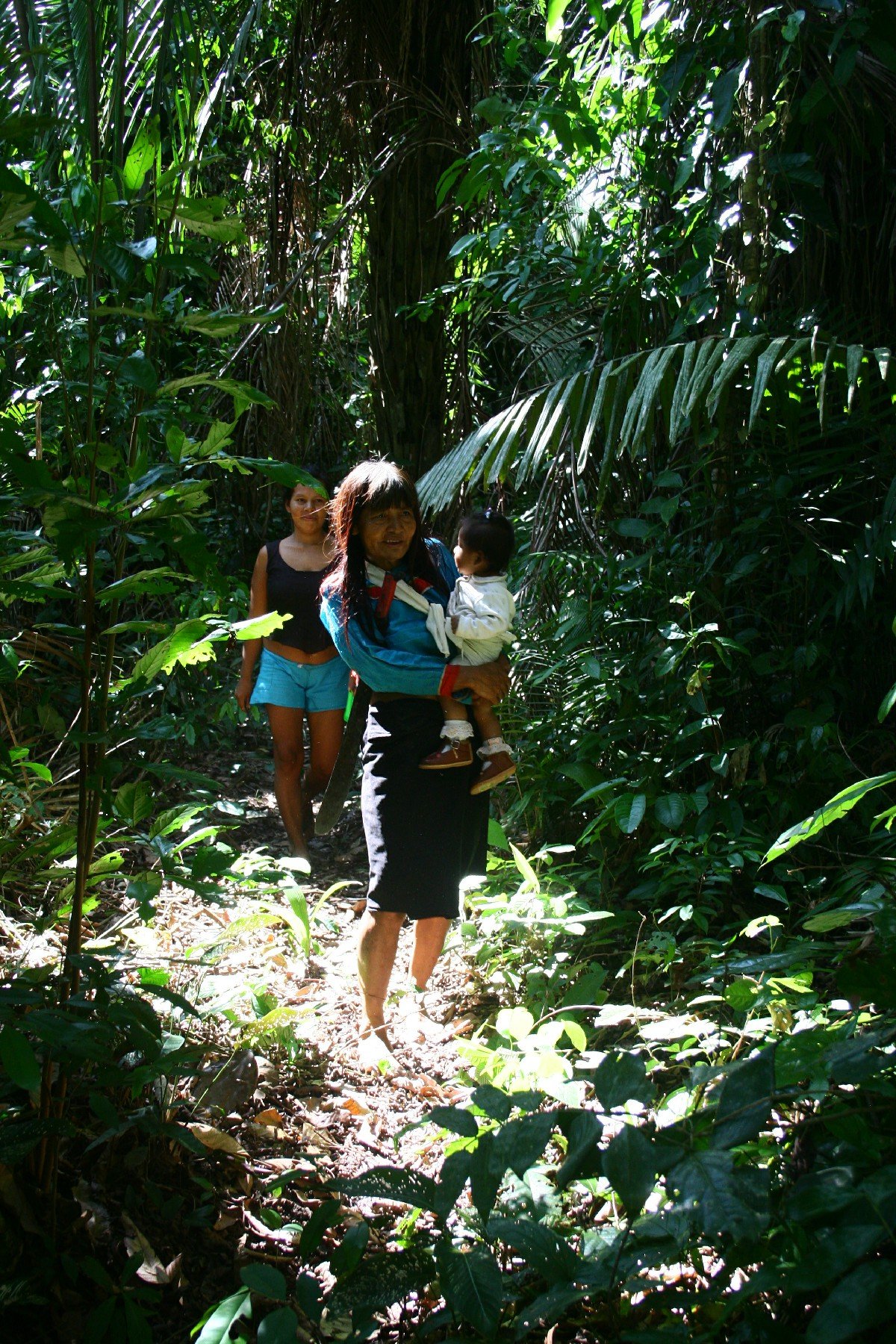 Norma Vega camina por la selva en busca de una planta medicinal.