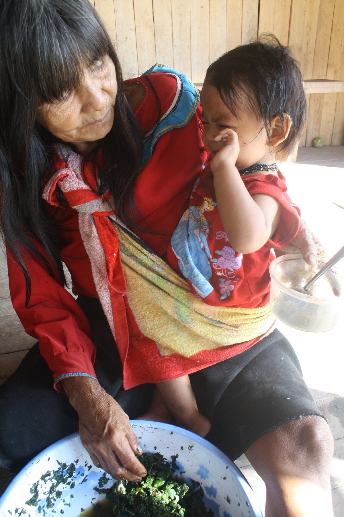 Norma Vega, una activa mujer de 60 años fue una de las cientos de personas que asistieron a los talleres anuales que AMETRA organizaba en cada zona del territorio shipibo. En los talleres se transmitía ese conocimiento de las abuelas pero, inteligentemente, no se excluía la medicina occidental. “Primero el remedio vegetal, si no se cura, ya sí la pastilla”, recuerda Norma que les decían. Y esto es lo que se observa ahora en la pequeña comunidad de Vencedor, donde vive Norma. Cuando los niños tienen fiebre o diarrea, si hay un golpe o una inflamación, se recurre a Norma, que acude con su preparado. Muchos cuentan que Norma les salvó la vida, pero pese a este reconocimiento es inevitable constatar como la pastilla es preferida a la planta, y seguramente es más la falta de dinero la que hace optar por los remedios vegetales, especialmente entre las nuevas generaciones. Muy sintomático es lo que le sucedió a Norma cuando se ausentó de su comunidad por unas semanas. A su hija, en un arranque de laboriosidad doméstica, le dio por limpiar el jardín, y se llevó por delante decenas de plantas medicinales que su madre había cultivado en los últimos años; las tomó por malas hierbas.