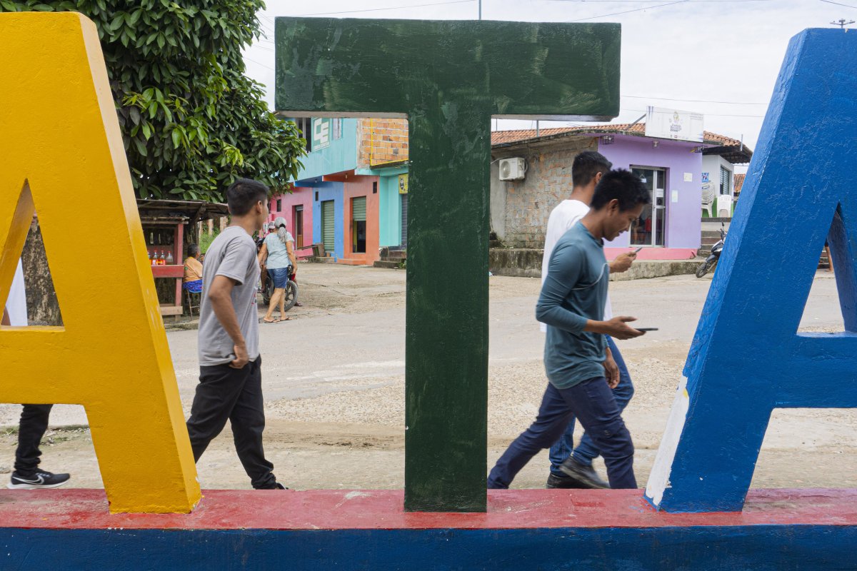 Un grupo de jóvenes indígenas pasea por el centro de Atalaia. Se calcula que la mitad de la población del Valle del Yavarí ha migrado a la ciudad para dar educación a los jóvenes.