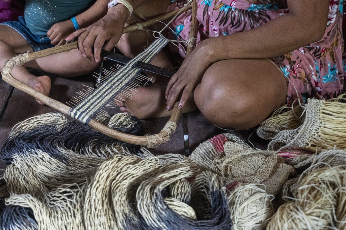 Con la fibra de utucum, una palma amazónica, Lindalva Mayoruna teje bolsos, pulseras y hamacas, que vende a través de MAI.