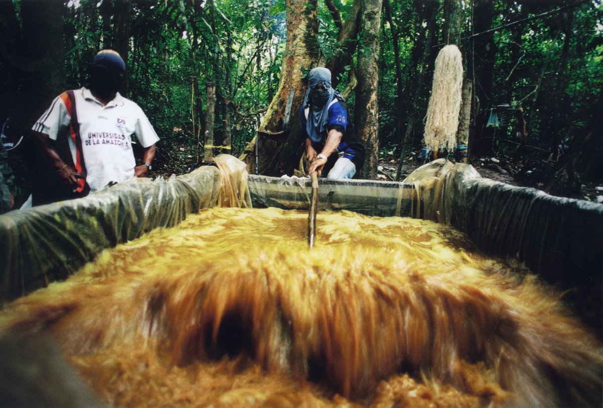 Conviviendo a duras penas con este proceso feroz, diversas etnias de la Amazonia colombiana utilizan tradicionalmente la hoja de coca. El procesamiento no es, por supuesto, contaminante; el consumo, social y ritualmente controlado, no es problemático, al contrario, permite la comunicación, propicia la curación, facilita el trabajo y anima los bailes tradicionales. Estimulante suave, con dosis de cocaína ínfimas, sobre el mambe también pesa el anatema de la prohibición internacional.