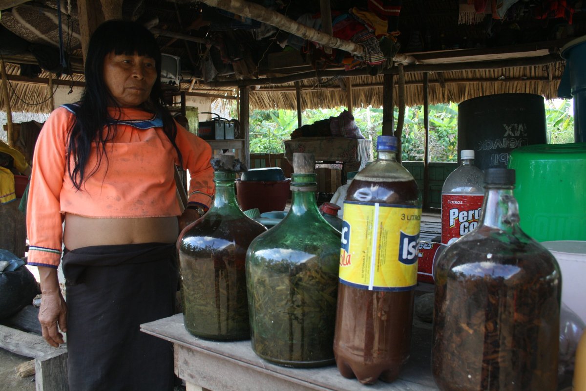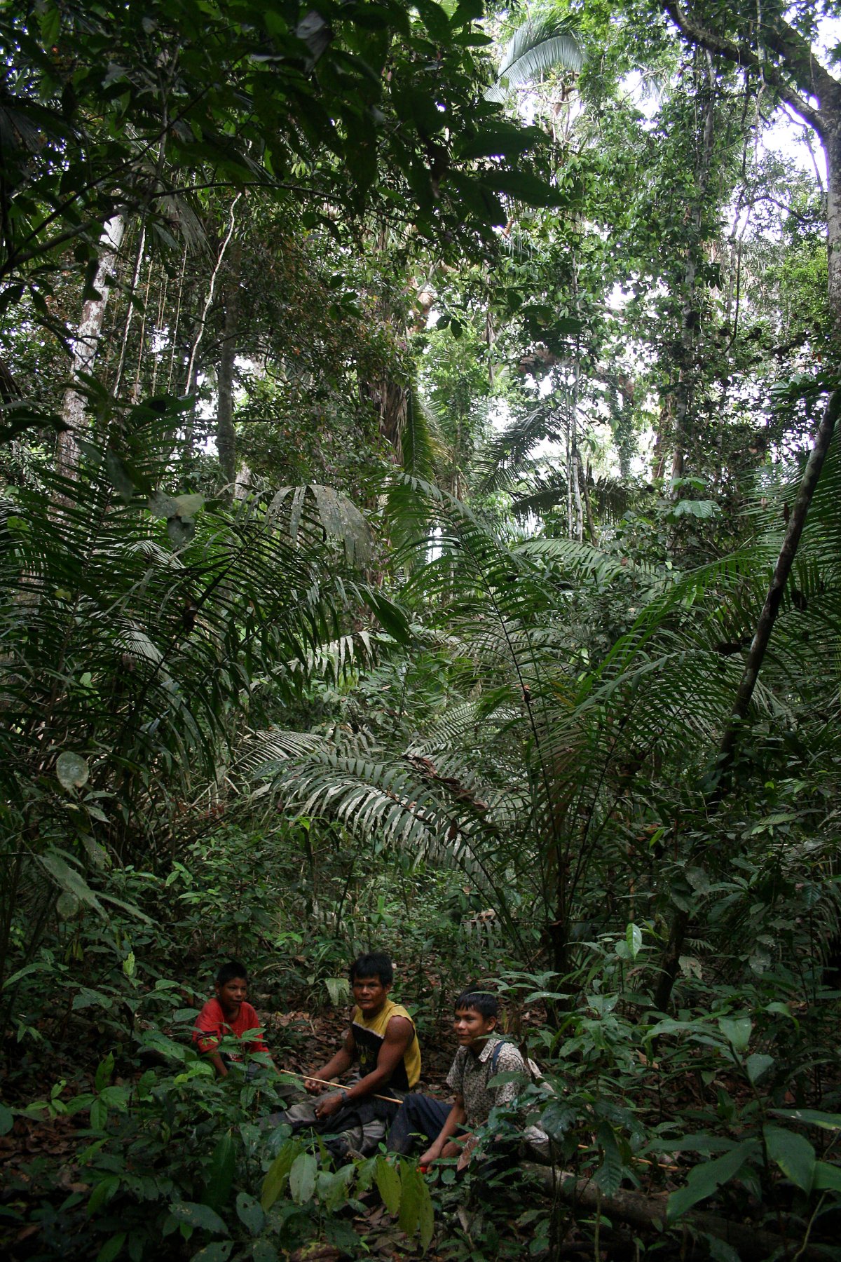 Los pueblos indígenas han participado en procesos extractivos en toda la Amazonia desde que el blanco introdujo en la región su sistema comercial global e insaciable: un virus altamente contagioso. Durante el siglo XIX contribuyeron a esquilmar manatíes y tortugas (cuya grasa servía como combustible para alumbrar), zarzaparrilla, paiche (pescado de preciada carne que se comercializaba salado)… A partir del siglo XX, con el establecimiento de carreteras y la mejora en las comunicaciones fluviales, el caucho de horrible recuerdo, las maderas, las pieles de animales y, en resumidas cuentas, cualquier producto que el sistema globalizado precisara, fue extraído sistemáticamente por la población indígena. El cazador ocaina Arsecio Pijachi recuerda que en su adolescencia, allá por los setenta en el río Igaraparaná, se internaba con su tío en la selva en busca de “pieles finas” como las de jaguares, nutrias y pecaríes, de los que mataban varias decenas en cada campaña; la población de esas especies se redujo en aquella década a niveles críticos. A cambio obtenían ropas, herramientas, motores, y una serie de artículos que se hacían cada vez más imprescindibles a medida que la economía de mercado se asentaba en este antaño rincón remoto del planeta, produciendo cambios drásticos en la relación del nativo con la selva.
